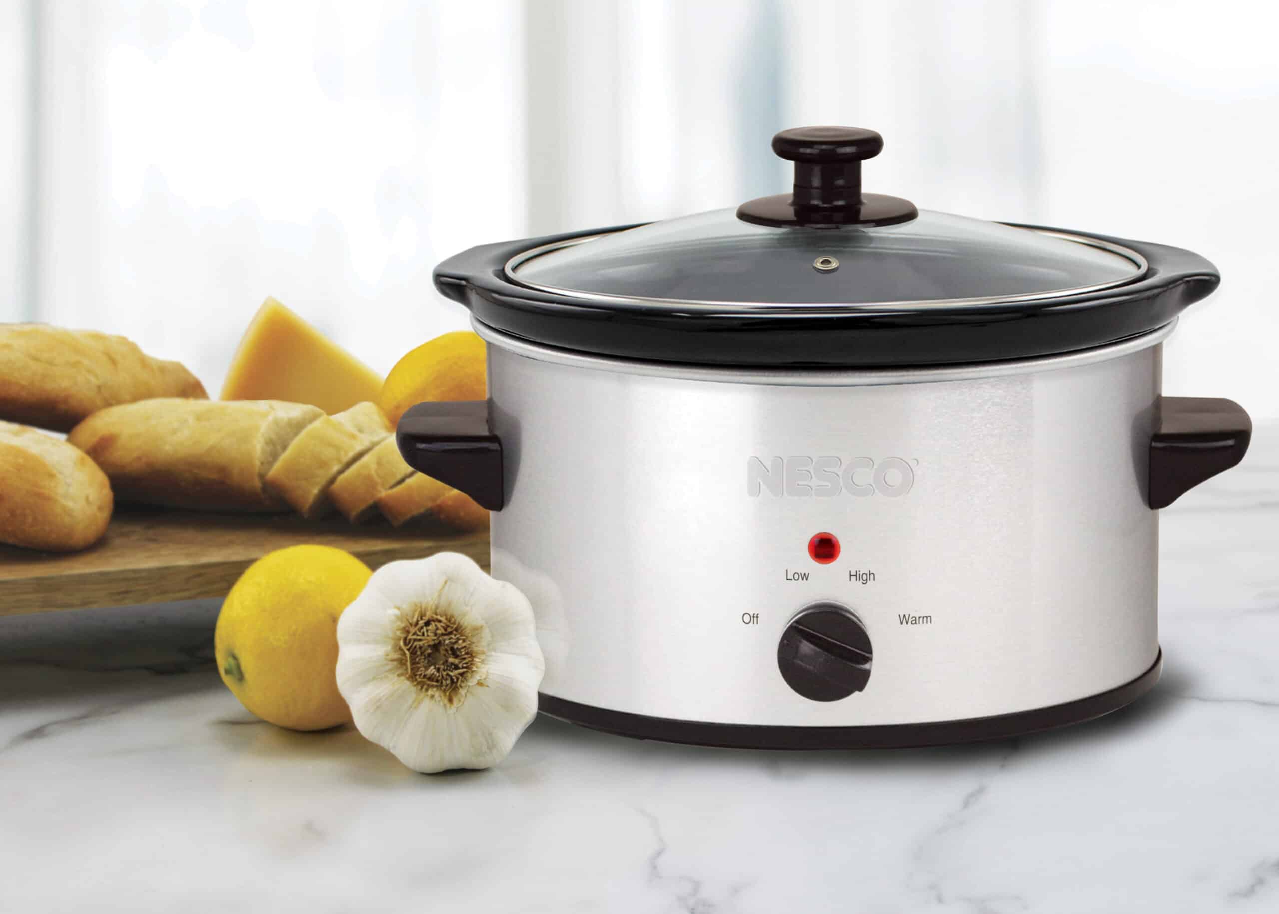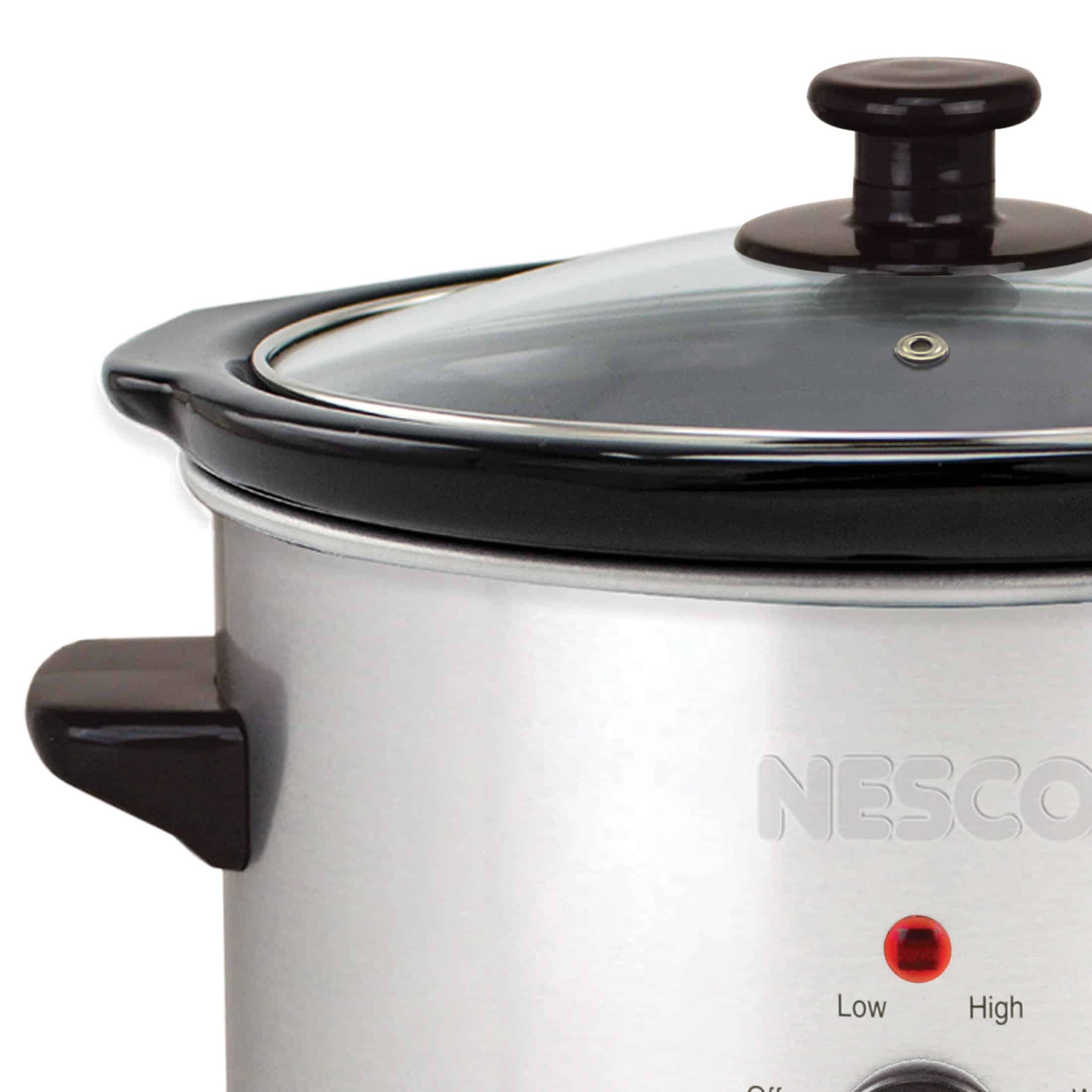 The NESCO 1.5 Qt. Slow Cooker makes mealtime and entertaining more flavorful. This compact slow cooker can cook delicious 1-2 person meals, appetizers, sauces and dips. Simply add your ingredients, choose your heat setting, and enjoy your family time. The removable ceramic pot is both oven and refrigerator-safe making meal prep for busy weekdays a snap. The clear tempered-glass lid lets you watch the cooking process. The stay-cool handles make the unit portable allowing you to bring that delicious flavor anywhere. No matter the recipe or the occasion, the NESCO 1.5 Qt. Slow Cooker keeps the temperature steady so your food tastes great!