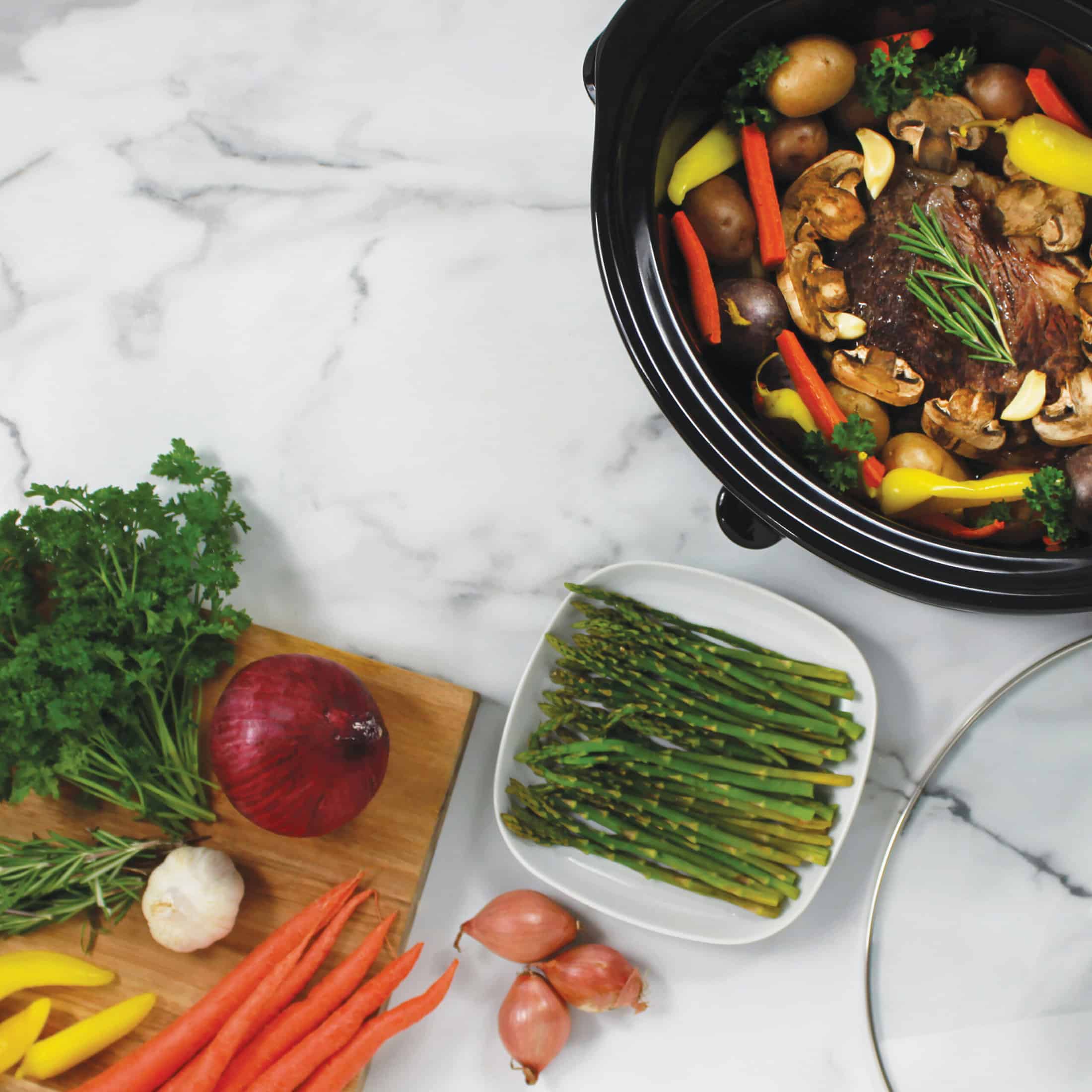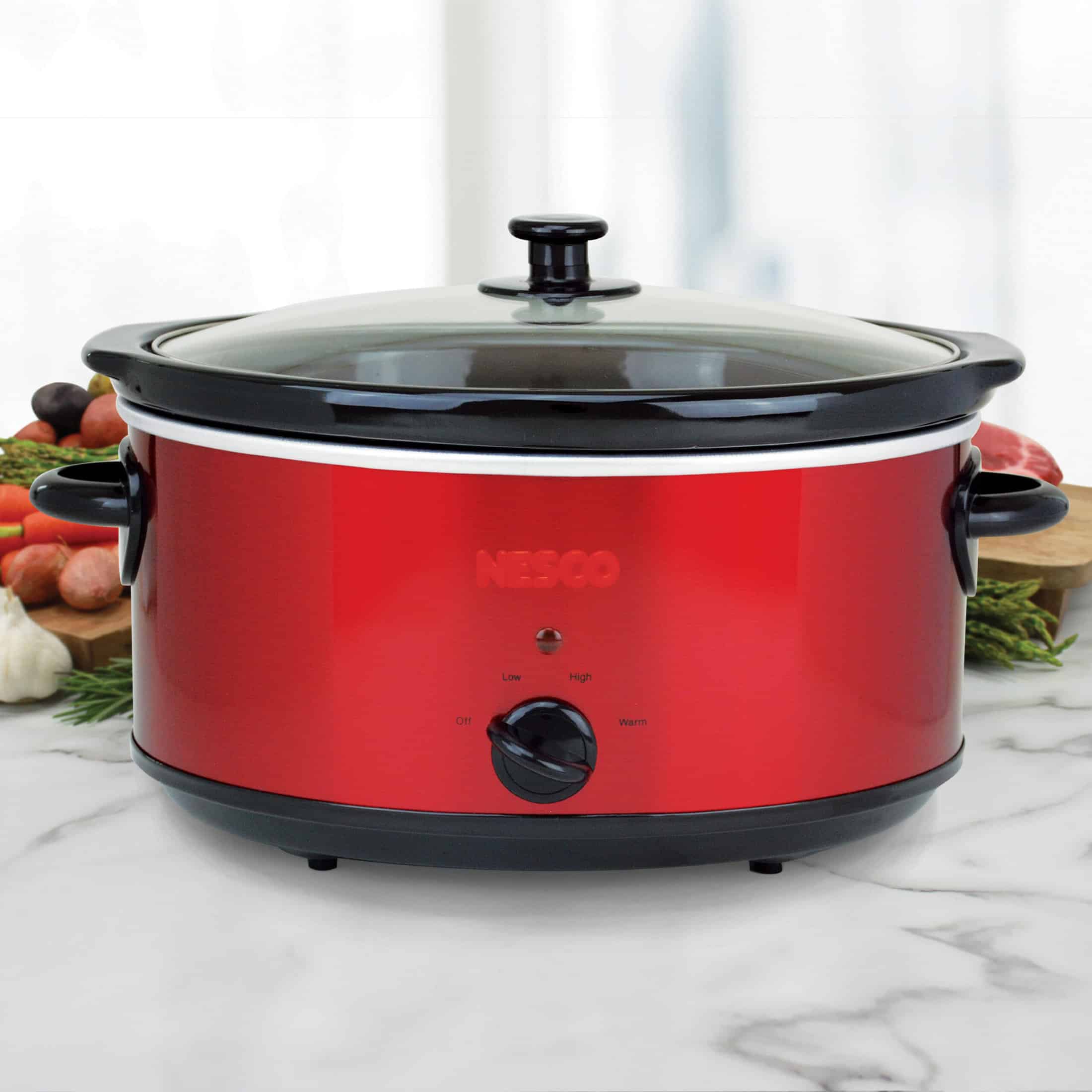 It’s easy to get dinner to the table on busy days with your NESCO 6 QT. Slow Cooker. Simply add your ingredients, choose your heat setting, and enjoy your family time. The removable ceramic pot is both oven and refrigerator-safe making meal prep for busy weekdays a snap. The clear tempered-glass lid lets you watch the cooking process. The stay cool handles make the unit portable allowing you to bring that delicious flavor anywhere. No matter what the occasion is, the NESCO 6 QT. Slow Cooker makes time around the dinner table special.