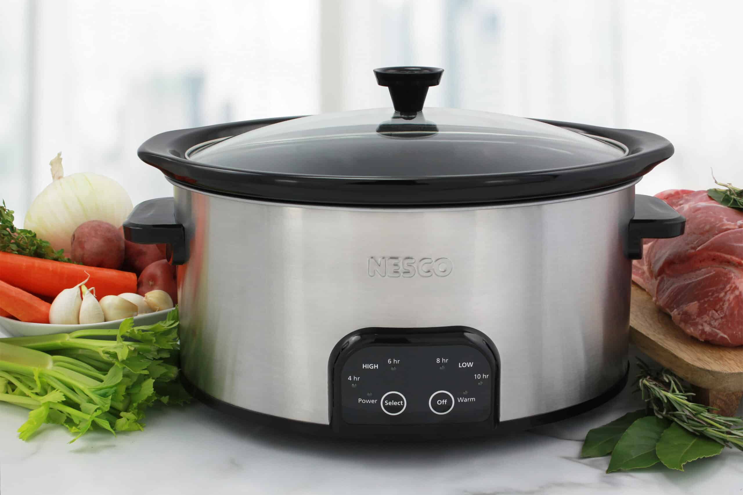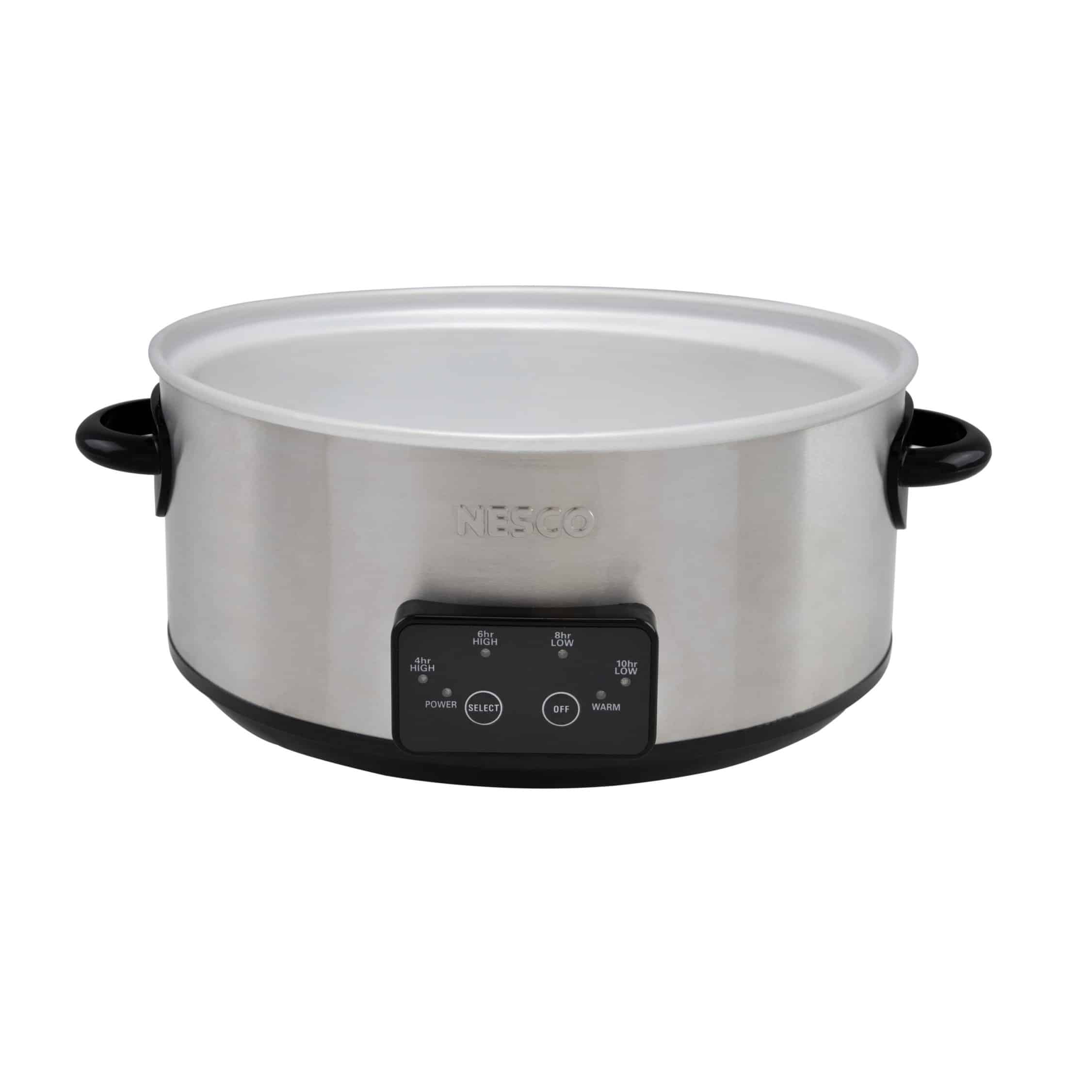 It’s easy to get dinner to the table on busy days with your NESCO 6 QT. Digital Slow Cooker. Simply add your ingredients, choose your settings, and go about your day. Easy-to-read pre-programmed time & temperature settings help eliminate the guesswork at determining cook times. Choose from 8 to 10 hours on Low or 4 to 6 hours on High. This cooker will automatically shift to the Warm setting once the cooking time has completed.