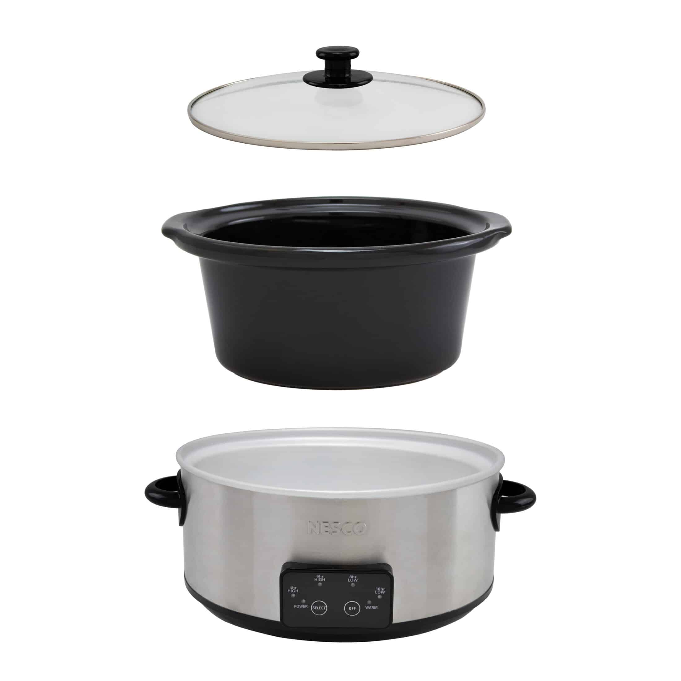 The removable ceramic pot is both oven and refrigerator-safe making meal prep for busy weekdays a snap. The clear tempered-glass lid lets you watch the cooking process. The stay cool handles make the unit portable allowing you to bring that delicious flavor anywhere. No matter what the occasion is, the NESCO 6 QT. Digital Slow Cooker makes time around the dinner table special.