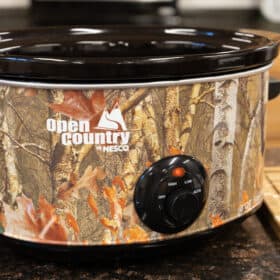 The Open Country 8 QT Slow Cooker makes mealtime and entertaining more flavorful. Slow cooking is a super-convenient way to prepare tasty, tender, one-pot meals and this oval slow cooker can make delicious meals, appetizers, sauces, and more. This 8-quart capacity slow cooker features a camouflage design and is ideal for households that prepare 1-8 servings. The adjustable temperature control dial offers an auto keep warm setting to accommodate a busy lifestyle. Great for dips, soups and fondues. No matter the recipe or the occasion, the Open Country 8 QT Slow Cooker keeps the temperature steady so your food tastes great!