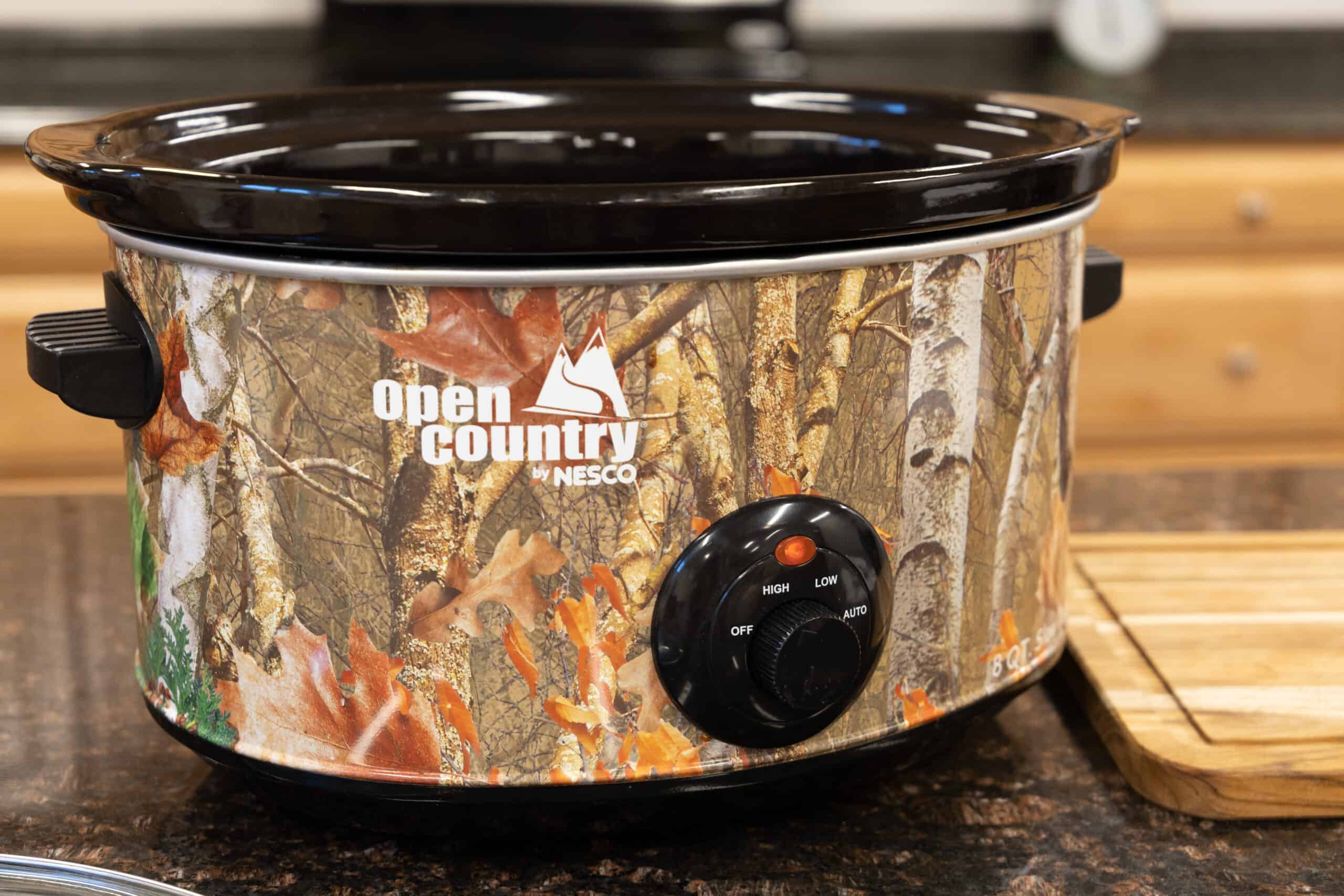 The Open Country 8 QT Slow Cooker makes mealtime and entertaining more flavorful. Slow cooking is a super-convenient way to prepare tasty, tender, one-pot meals and this oval slow cooker can make delicious meals, appetizers, sauces, and more. This 8-quart capacity slow cooker features a camouflage design and is ideal for households that prepare 1-8 servings. The adjustable temperature control dial offers an auto keep warm setting to accommodate a busy lifestyle. Great for dips, soups and fondues. No matter the recipe or the occasion, the Open Country 8 QT Slow Cooker keeps the temperature steady so your food tastes great!