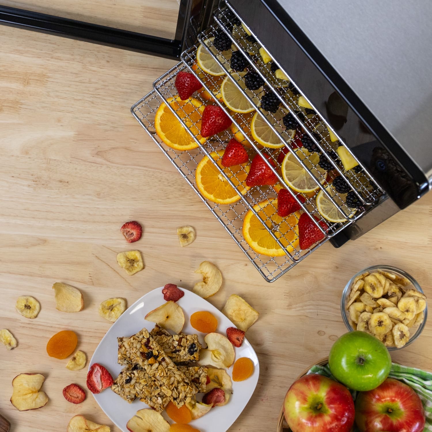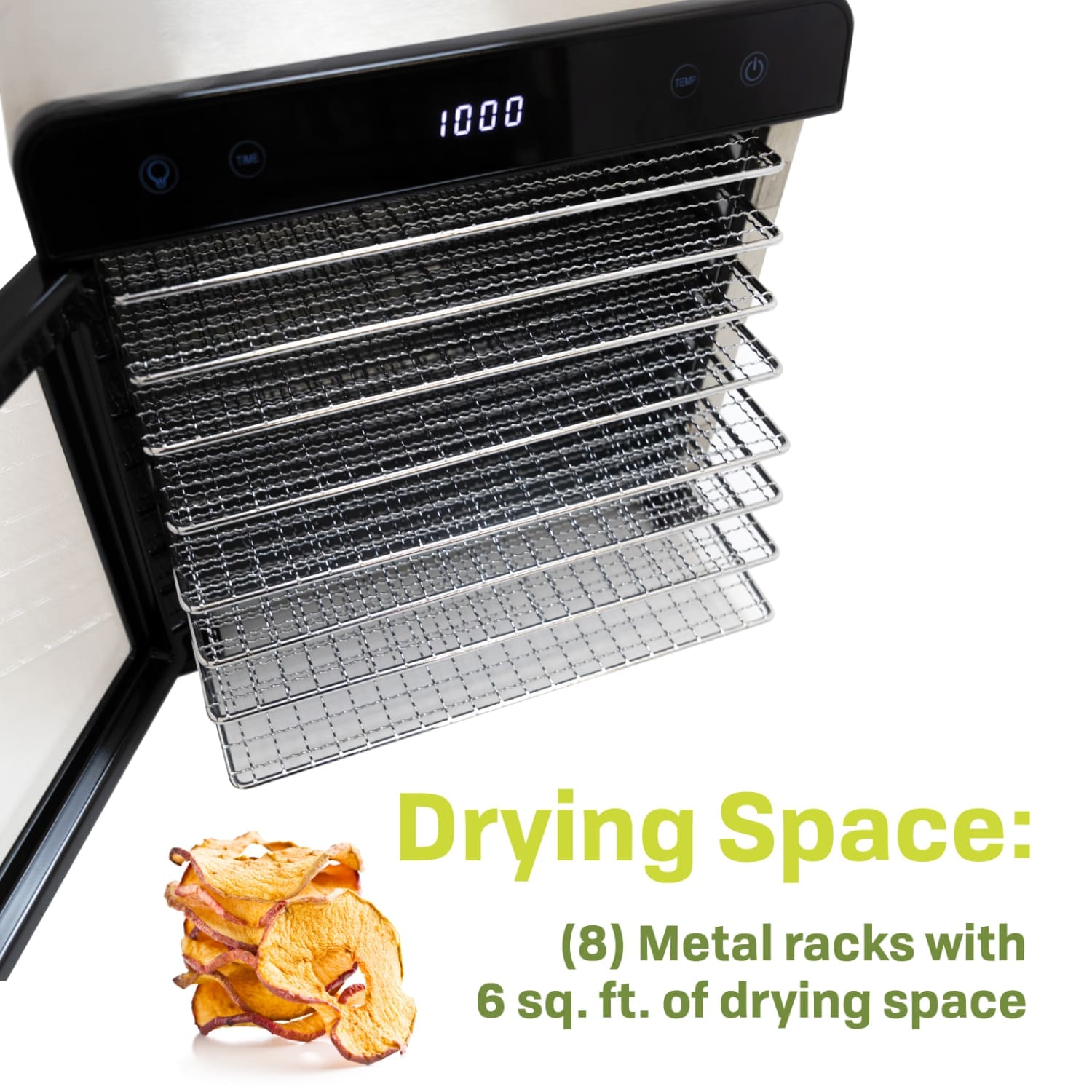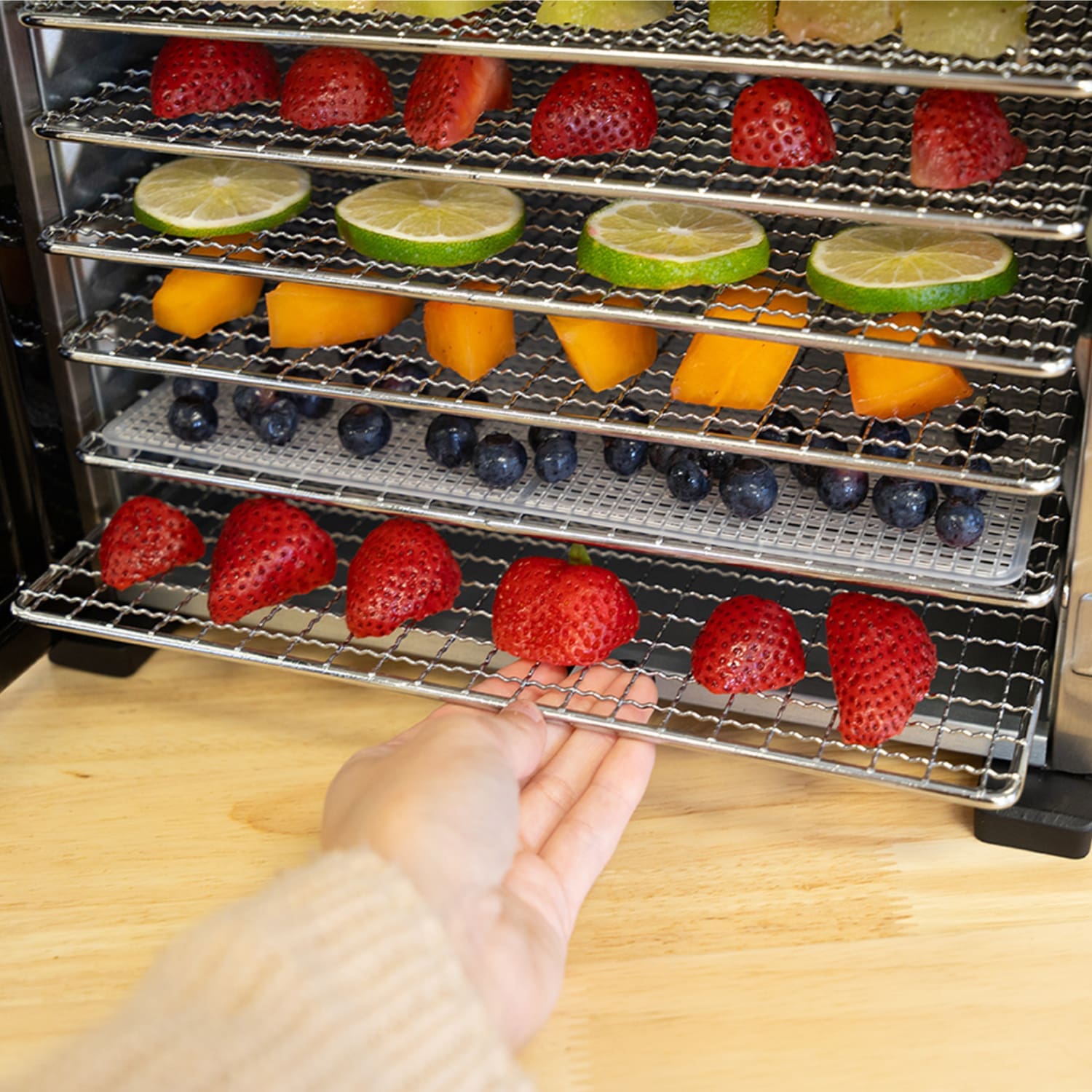 Compact yet powerful. You will want to show off this attractive 8-Tray Stainless Steel Dehydrator on your counter, and keep it handy, because you will be using it daily. Dehydrate blueberries, apples, or strawberries for nutritious snacks. Dehydrated tomatoes, carrots and other vegetables extend your harvest and make meal prep a breeze. Of course, this 8-Tray is perfect for jerky or pet treats, too.