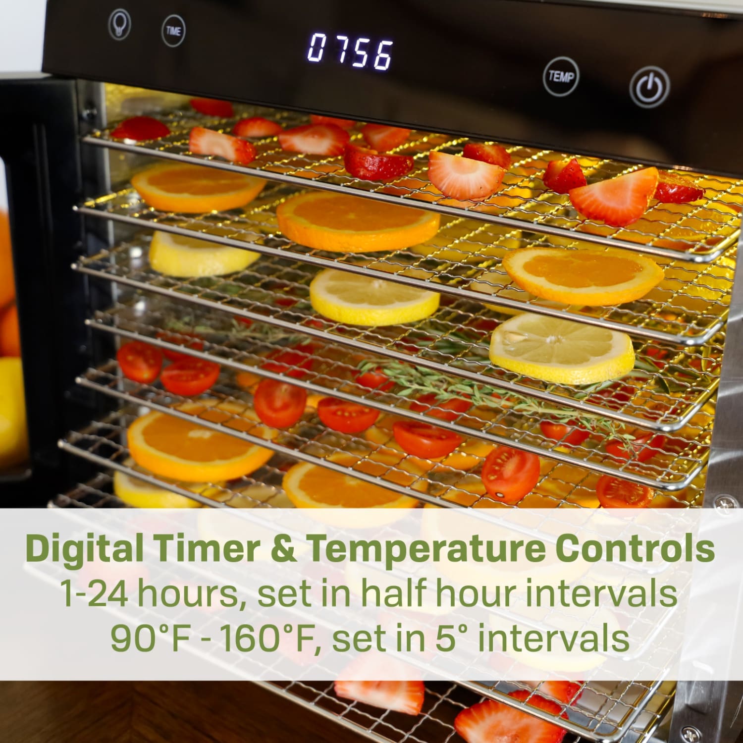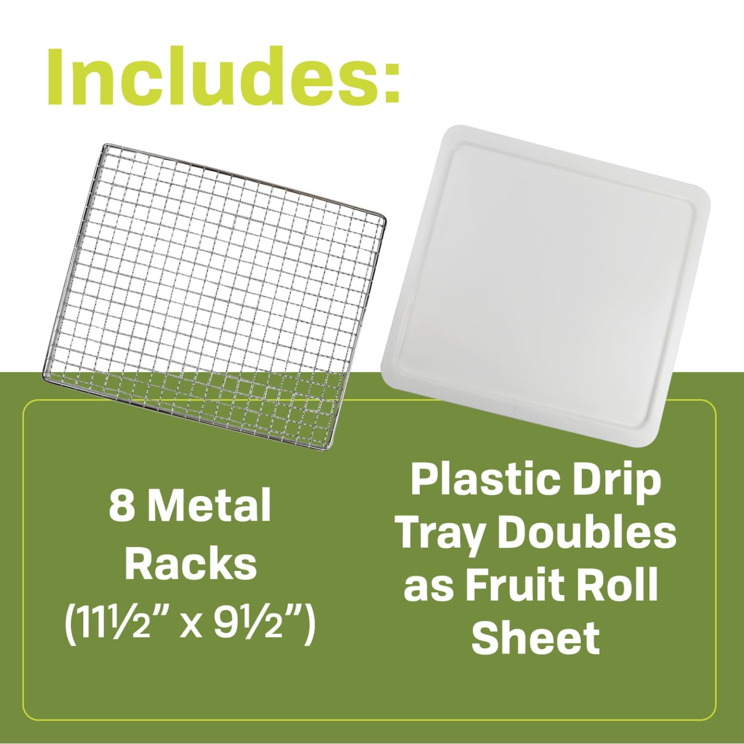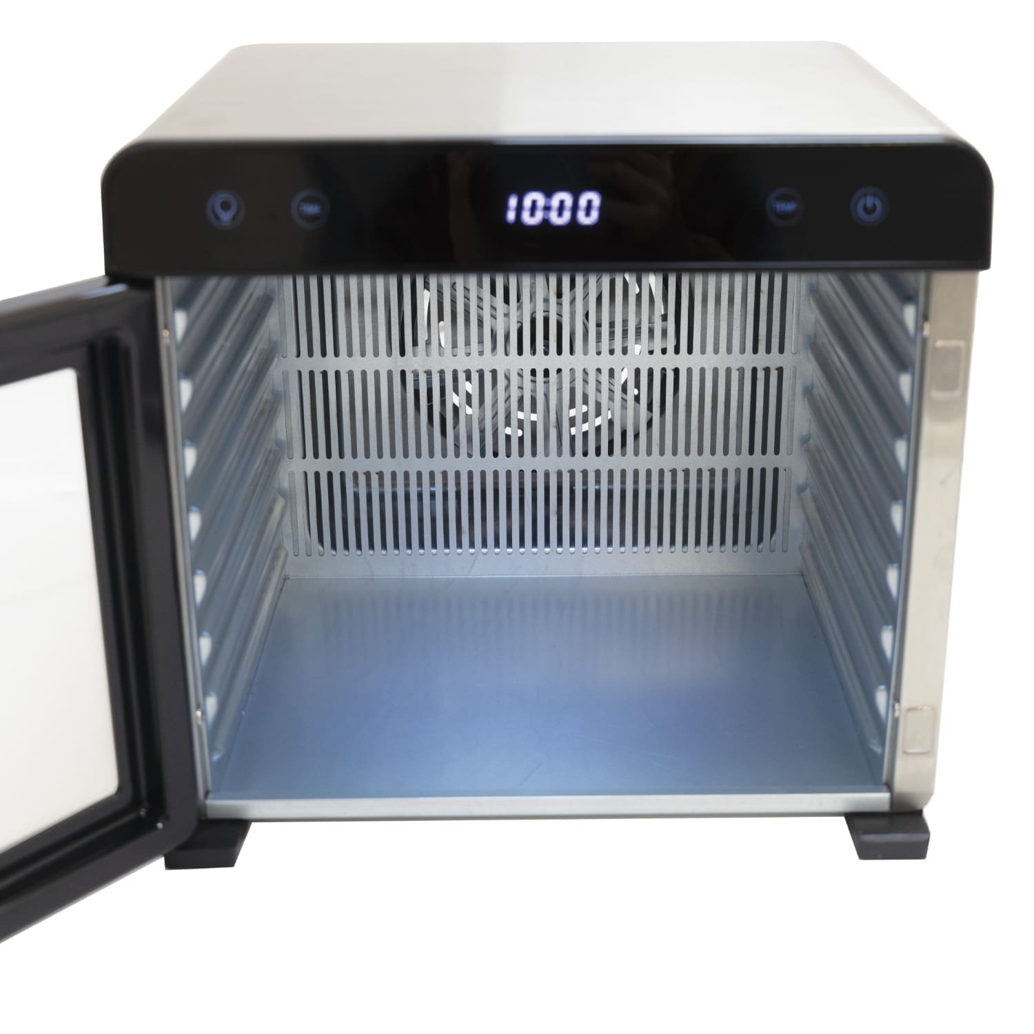Compact yet powerful. You will want to show off this attractive 8-Tray Stainless Steel Dehydrator on your counter, and keep it handy, because you will be using it daily. Dehydrate blueberries, apples, or strawberries for nutritious snacks. Dehydrated tomatoes, carrots and other vegetables extend your harvest and make meal prep a breeze. Of course, this 8-Tray is perfect for jerky or pet treats, too.