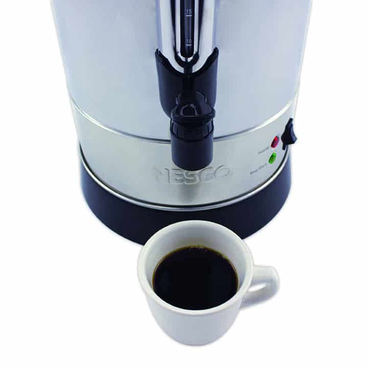 We love our little Nesco! The 30 cup size is perfect for both our needs and counter space. It brews wonderful coffee and keeps it hot all day long. Very easy to use, and now with the reset button repositioned up on the side, if it should trip, it’s easy to just reach over to the side and press and reset it. The Nesco 30 cupper is beautifully designed and is a compliment to our kitchen. We really love the shiny stainless steel, and the view tube really adds a finishing touch. I’d like to mentioned that some have stated that they wished there was a filter for the coffee basket. Well, we found that the basket filter for our old percolator fits perfectly in the Nesco’s basket. Just punch a hole in the center of the filter and slip it over the percolator tube, press it around to fit, and there you go! Easy Peasy! Thanks, Nesco, for such a wonderful product. Next purchase will be one of the Nesco meat grinders.