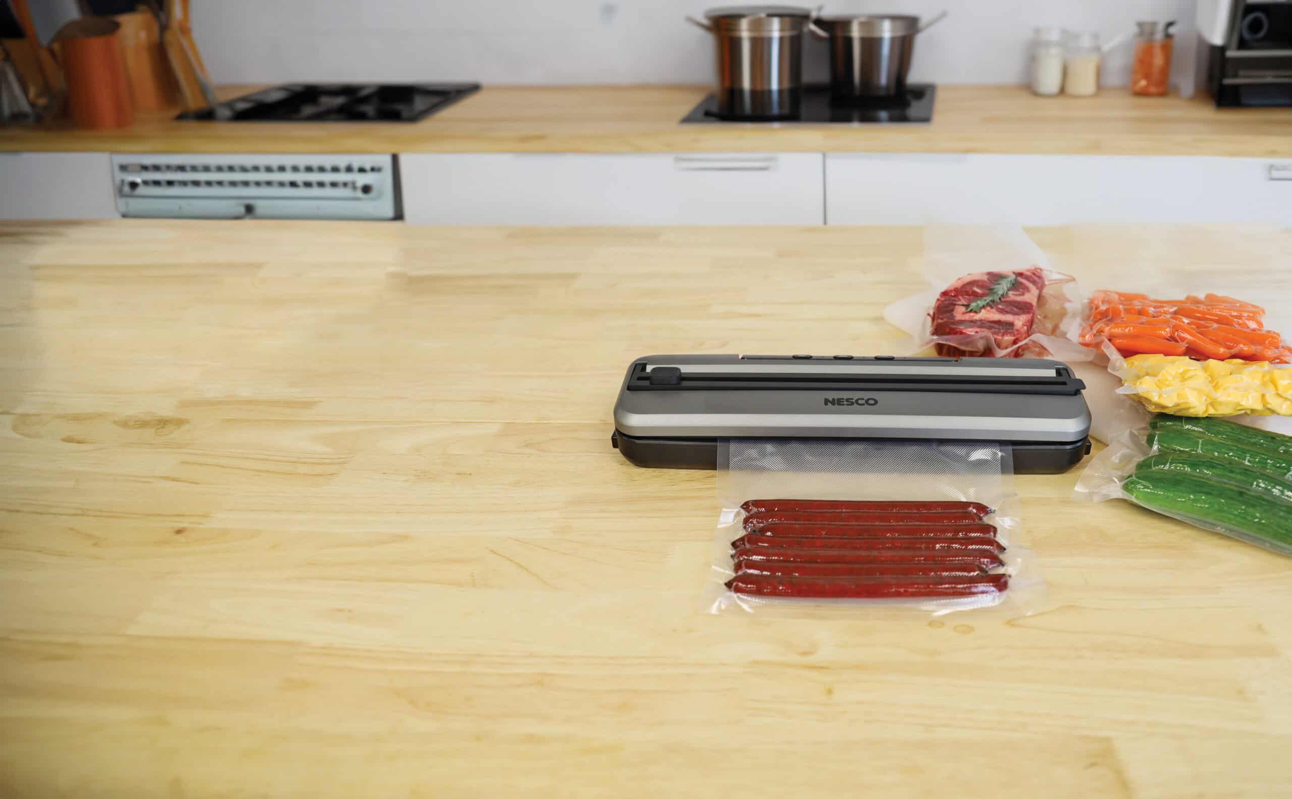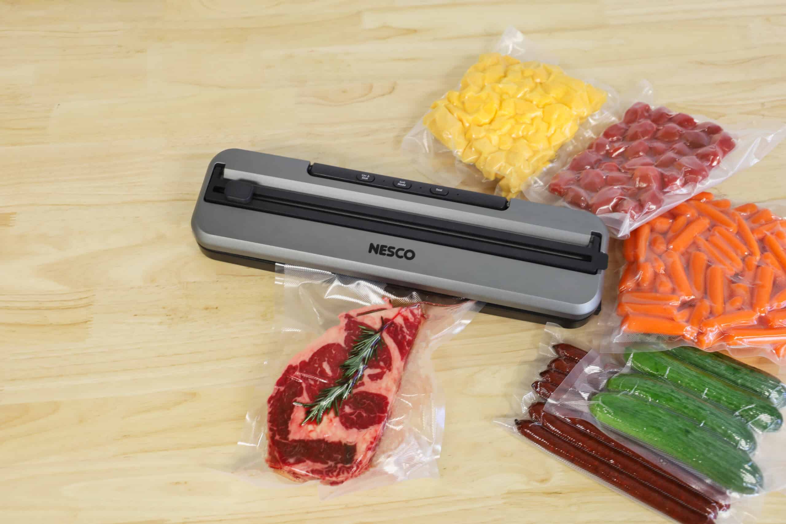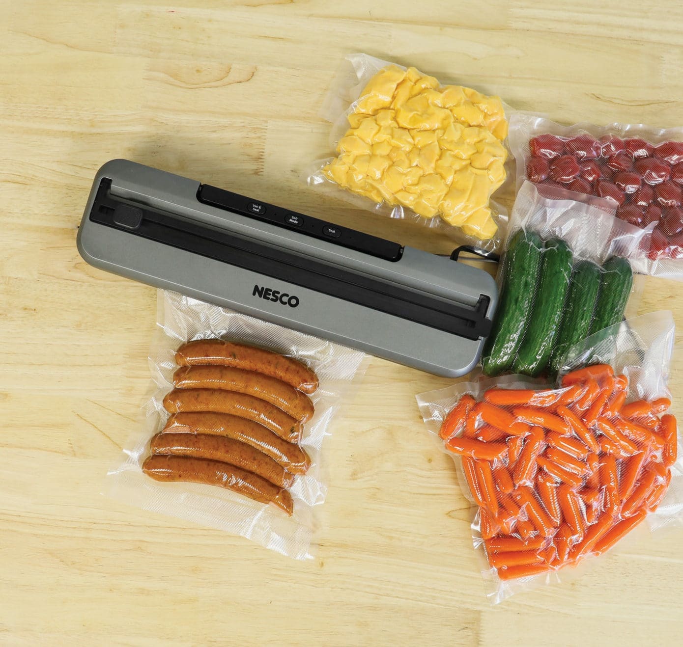 Small, but mighty, the NESCO Compact Vacuum Sealer VS-74S can easily turn bulk foods into the right portion sizes for your family. 10 NESCO quart-size bags and 10 NESCO gallon-size bags are included to get you started. A convenient bag cutter is built-in on top of this unit to customize rolls into specific-sized bags to fit your needs from snacks to entrees. This lightweight unit easily fits into a drawer or pantry to keep nearby as you will be using it daily to save food and money.