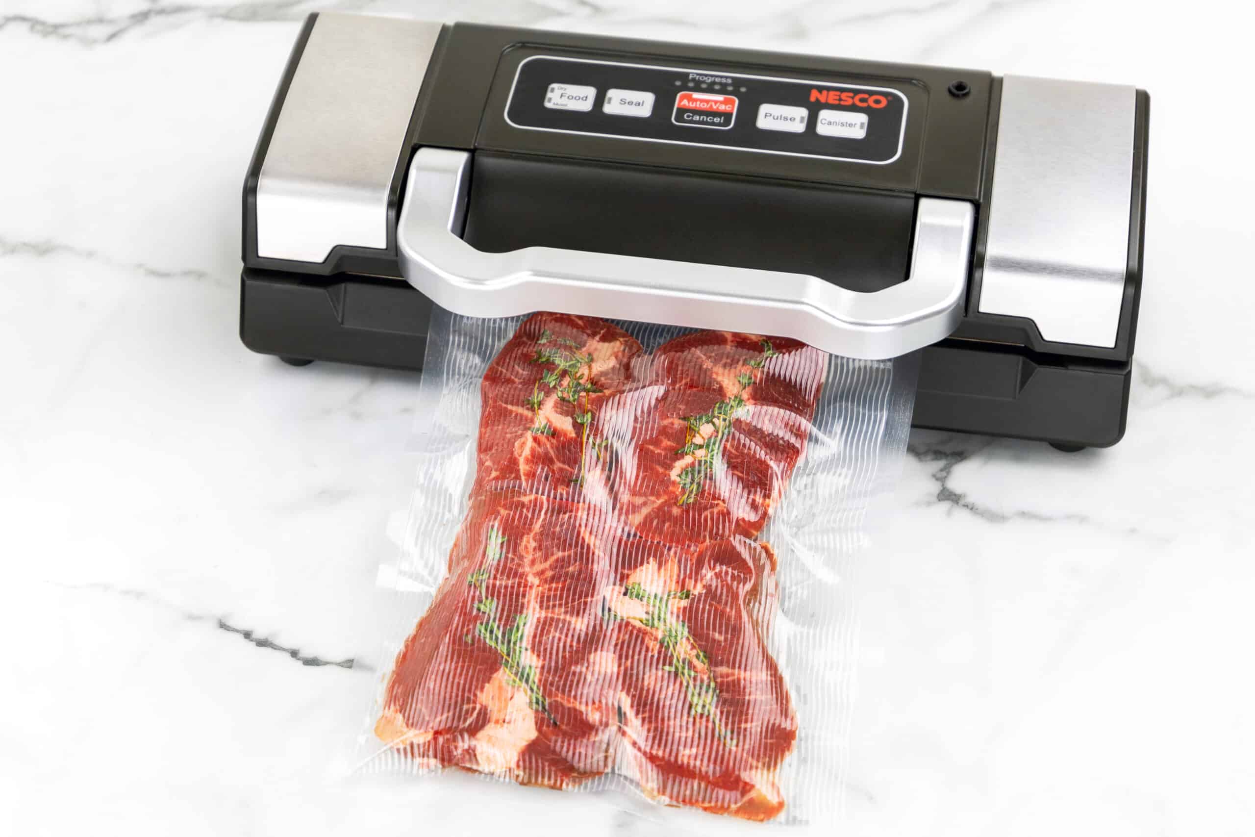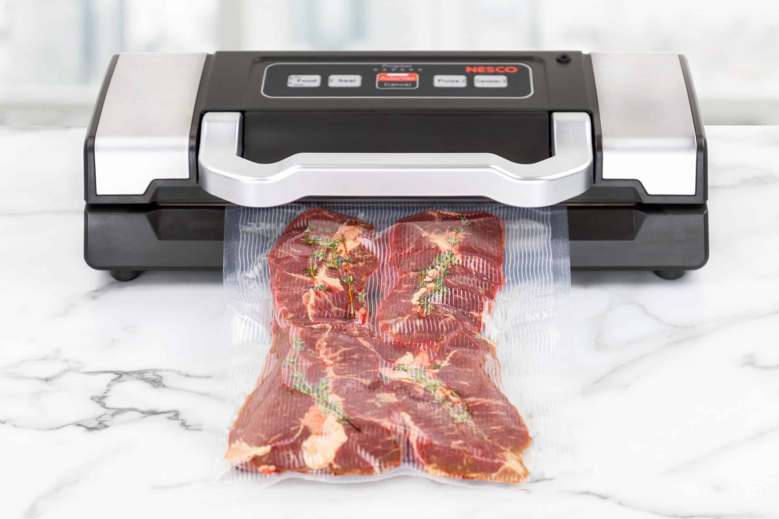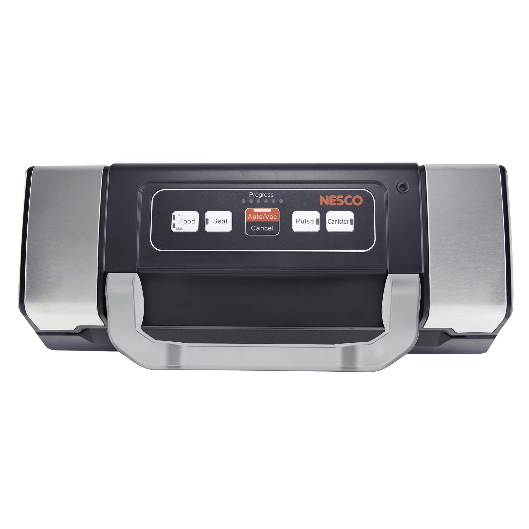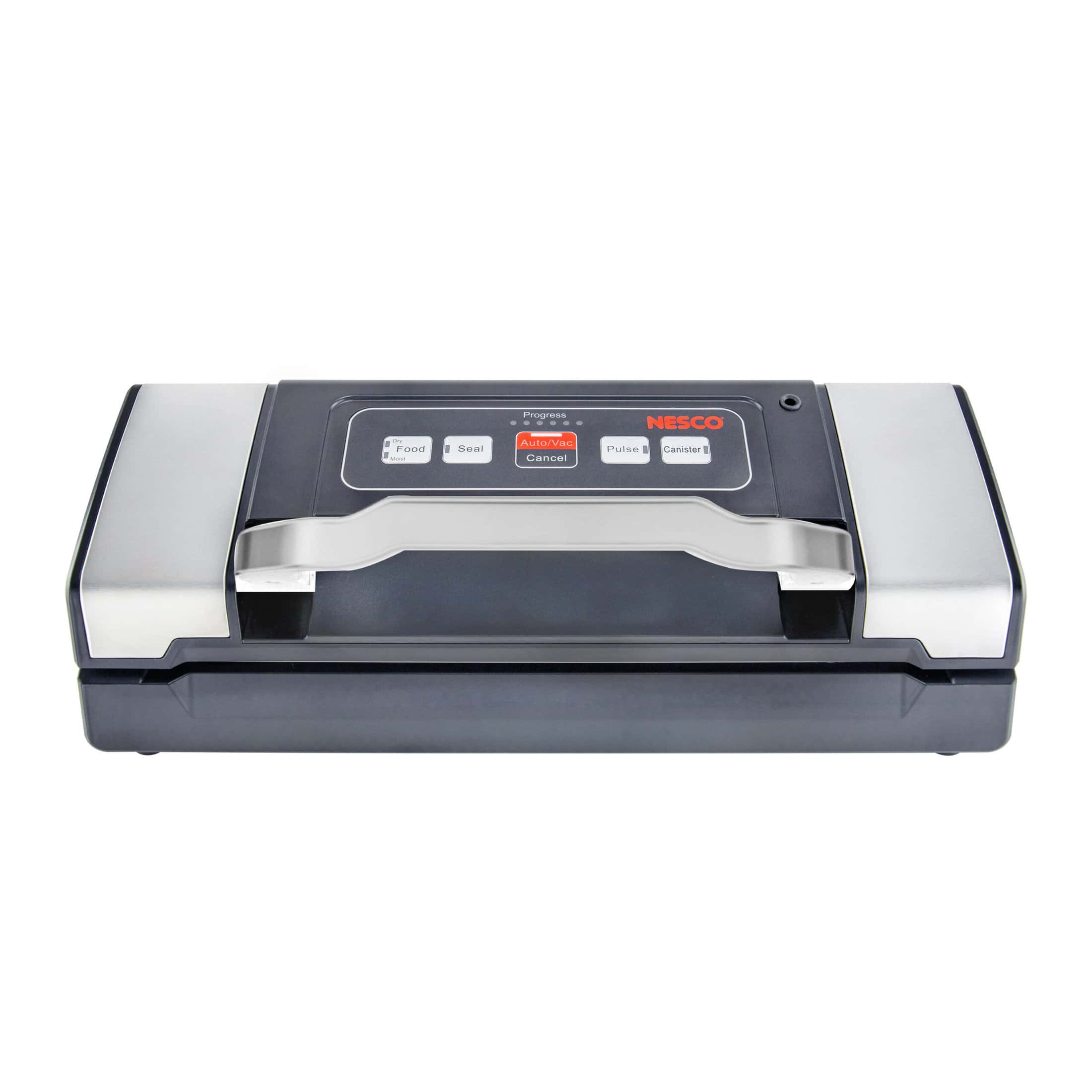 The NESCO VS-09 Deluxe Vacuum Sealer offers all the versatility and performance you could ever need from a vacuum sealer. Fully automatic, one touch operation, and automatic shut off makes this vacuum sealer easy to use. This sealer features a 110 watt vacuum pump that ensures maximum air extraction when sealing dry and moist food items. The pulse vacuum function lets the user control the suction for delicate items like pastries, buns or cut produce. The seal only function prevents over-vacuuming and crushing of delicate foods. The easy-lock handle makes one-handed operation smooth and easy. This sealer can accommodate up to an 11.8” width bag providing the versatility needed for a wide range of sealing jobs. Keep food fresh up to 5 times longer than traditional methods. Use the accessory port and hose to attach canisters to marinate meats quickly or protect crushable items like cereal. Sample bag material is included to get you started. The NESCO VS-09 Deluxe Vacuum Sealer is compatible with most brands of vacuum sealer bags and rolls.