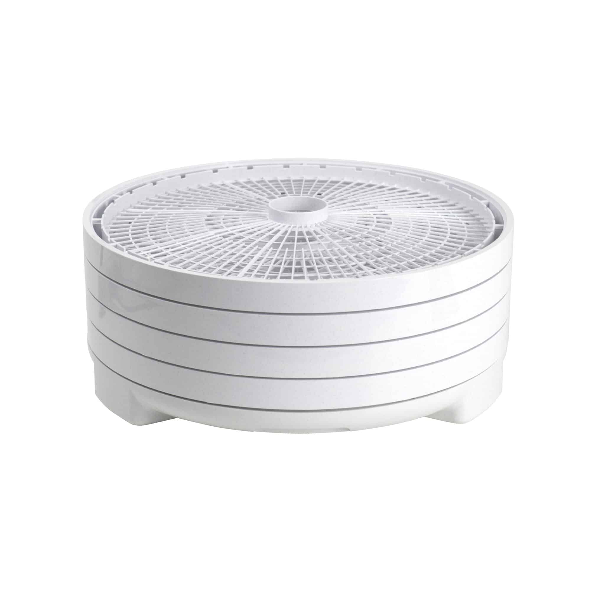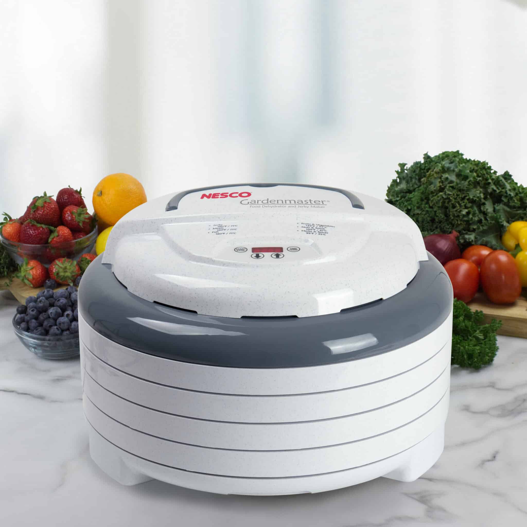 The NESCO FD-1040 Gardenmaster Digital Pro Dehydrator is ideal for drying and preserving large amounts of fruits, vegetables, herbs and jerky. 1000 watts of drying power means you can dry more, faster. This dehydrator comes with four (15 1/2″ diameter) trays and expands up to 20 trays so you can dry large quantities at once, with no tray rotation needed. Additional Add-A-Trays sold separately. The adjustable digital temperature control (90°F -160°F) gives you the flexibility to achieve the best results when drying different foods that need varying temperature settings. The digital timer is programmable for up to 48 hours of drying time. The quiet, powerful Converga-Flow® fan forces heated air down the exterior pressurized chamber, then horizontally across each individual tray. The air flow then converges in the center for quick, consistent drying that is four times faster than other dehydrators. The top mounted fan eliminates liquids dripping into the heater chamber. The NESCO FD-1040 Gardenmaster Digital Pro Dehydrator provides the drying power that generates maximum speed and quality for dehydrating your favorite foods.