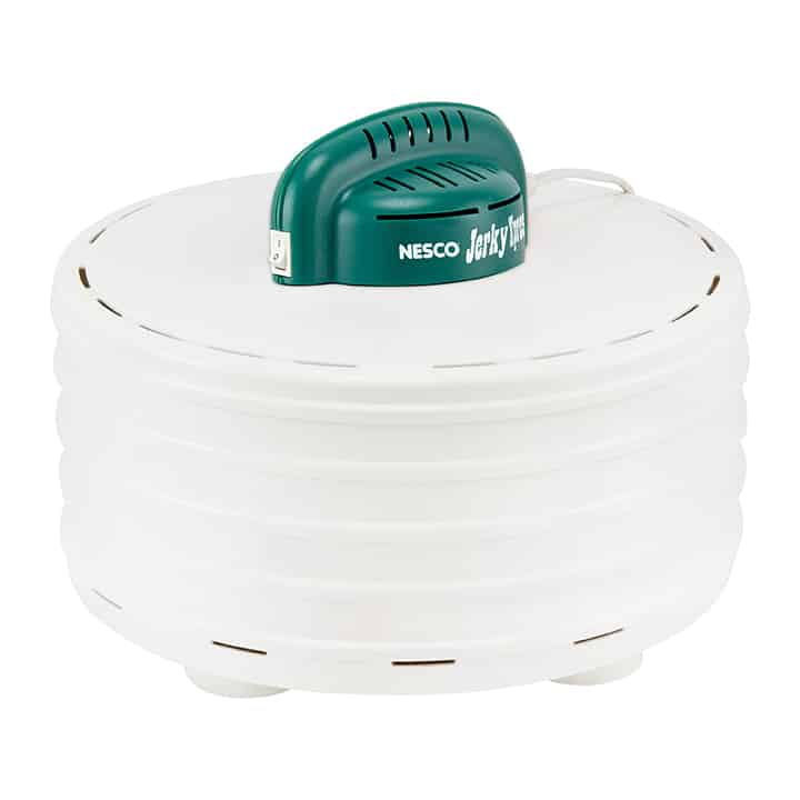 The NESCO FD-28JX JerkyXpress Dehydrator is the complete do-it-yourself jerky kit, perfect for a beginner or an experienced jerky maker! This dehydrator comes with a jerky gun and 3 tip attachments for making strips or sticks. Sample seasoning and cure packs are included to get started. The JerkyXpress comes with four (13 1/2″ diameter) trays and expands up to 7 trays so you can dry larger quantities, with no tray rotation needed. Additional Add-A-Trays sold separately. The fixed temperature control takes the guesswork out of finding the optimal drying temperature when making jerky and the quiet, powerful fan forces heated air down the center chamber, then across each individual tray for consistent drying. The NESCO FD-28JX JerkyXpress Dehydrator provides the drying power for dehydrating great jerky snacks for the active lifestyle.