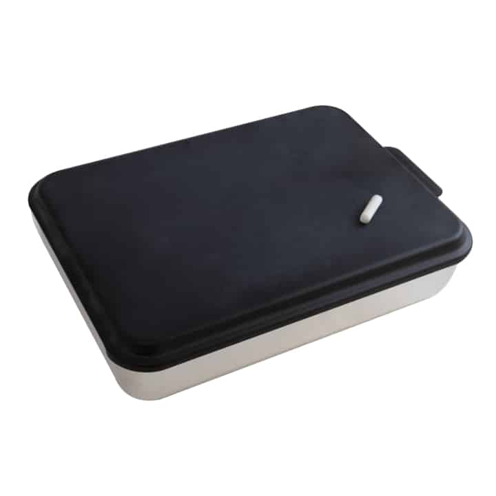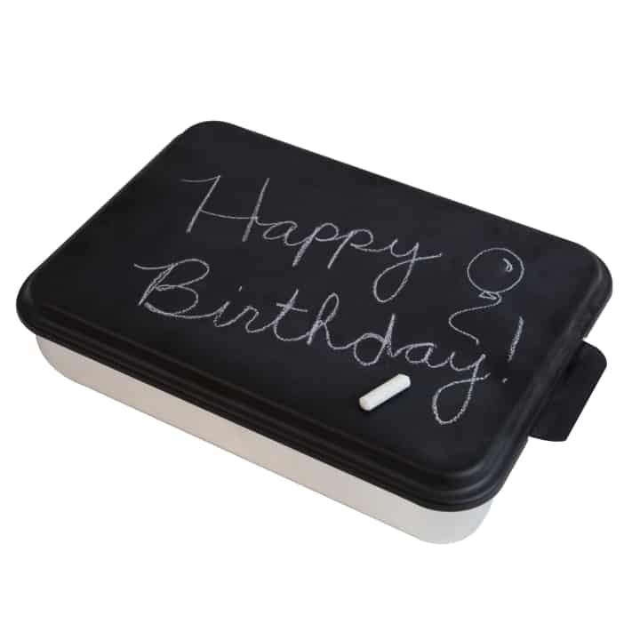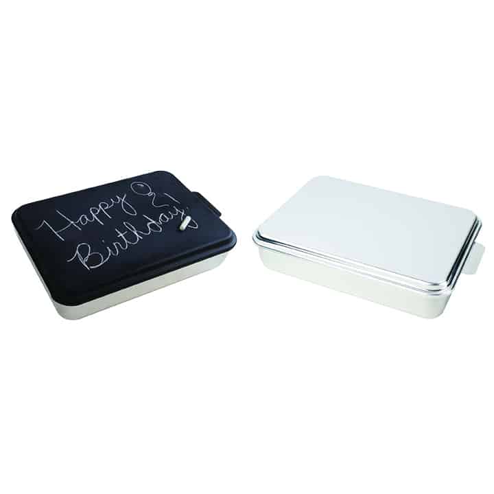 NESCO Cake Pans are perfect for those all-year-round special occasions like picnics, family gatherings and graduations. The classic, natural aluminum pan and durable powder-coated cover ensure durability and portability that will last. The chalkboard surface of the lid and the included chalk piece to list ingredients and allergens or note the cause for celebration. The aluminum pan is the ideal size for cakes, brownies, and other delicious treats. The decorated cover will keep foods fresh and is attractive for serving. NESCO Cake Pans are a great gift idea for friends and family.