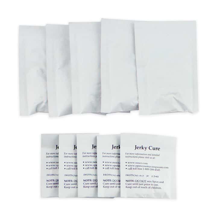 To use, simply mix the seasoning and cure packs with lean ground meat or add a ½ cup of water to the seasoning and cure when making sliced jerky. Use a jerky gun to make sticks or place slices onto a NESCO dehydrator or a conventional oven for a great-tasting snack. Jerky will be ready in a matter of hours.