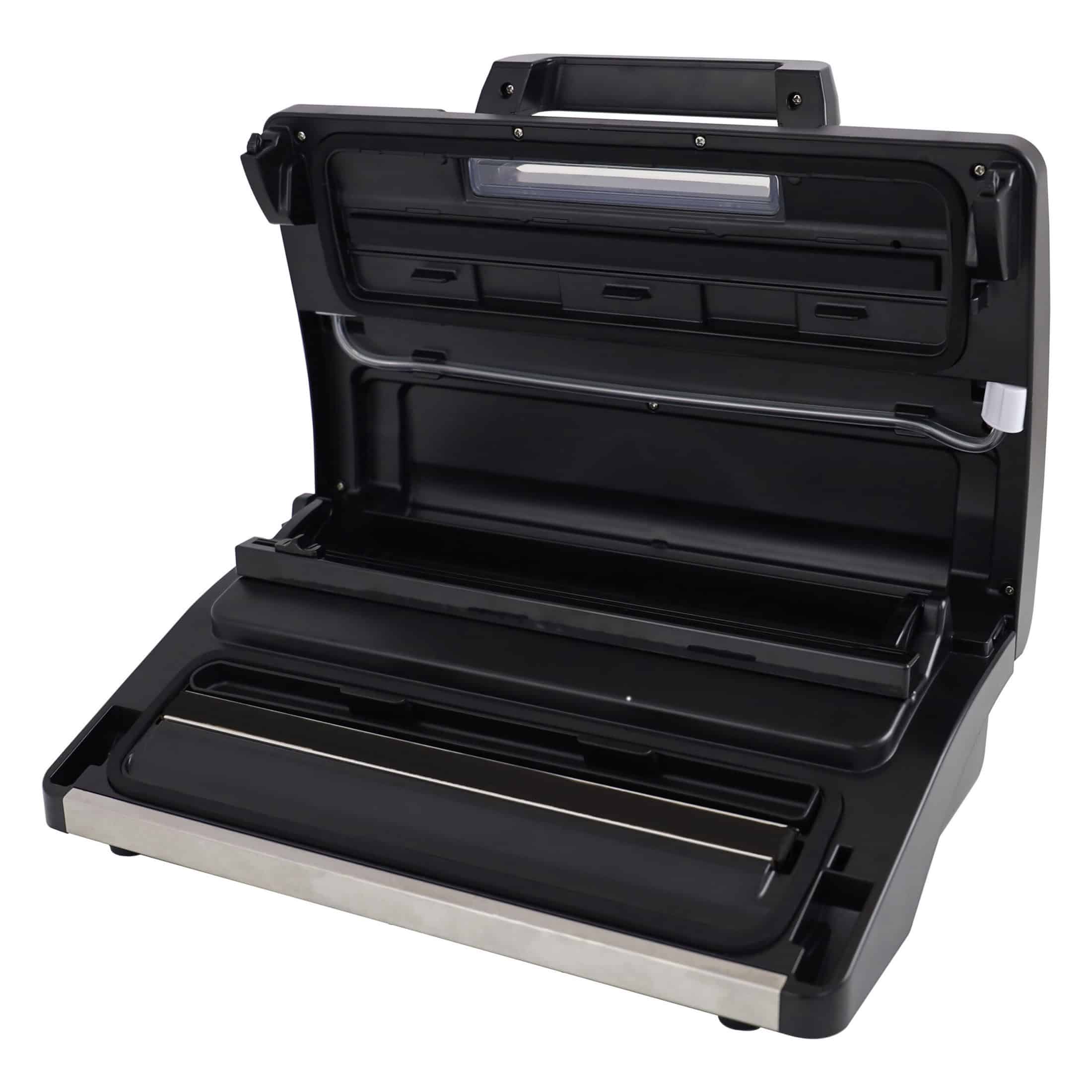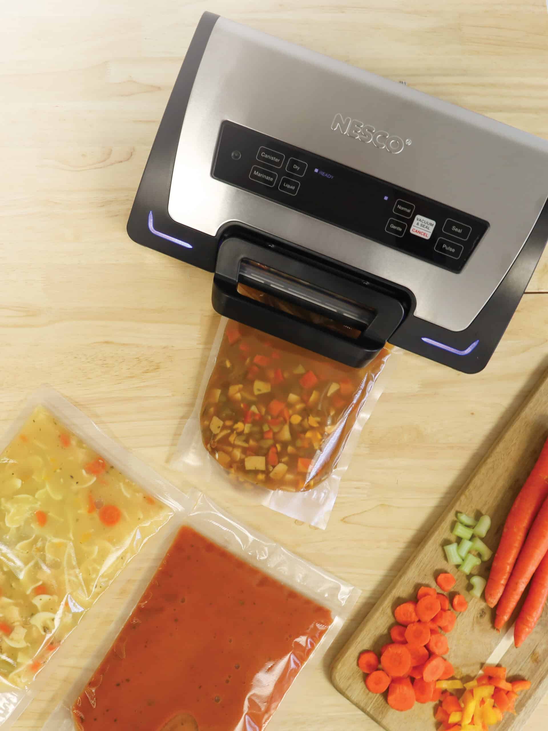Introducing the patent-pending NESCO Premium Vacuum Sealer VS-22LB, the ultimate solution for preserving your food’s freshness and flavor. This state-of-the-art vacuum sealer is designed to cater to both liquid and solid food items. The powerful 250 watts can marinade meat in minutes instead of hours. A $70 value kit of bags and rolls is included. In addition to standard bags, 20 easy-to-fill bags for liquid vacuum sealing are included.
