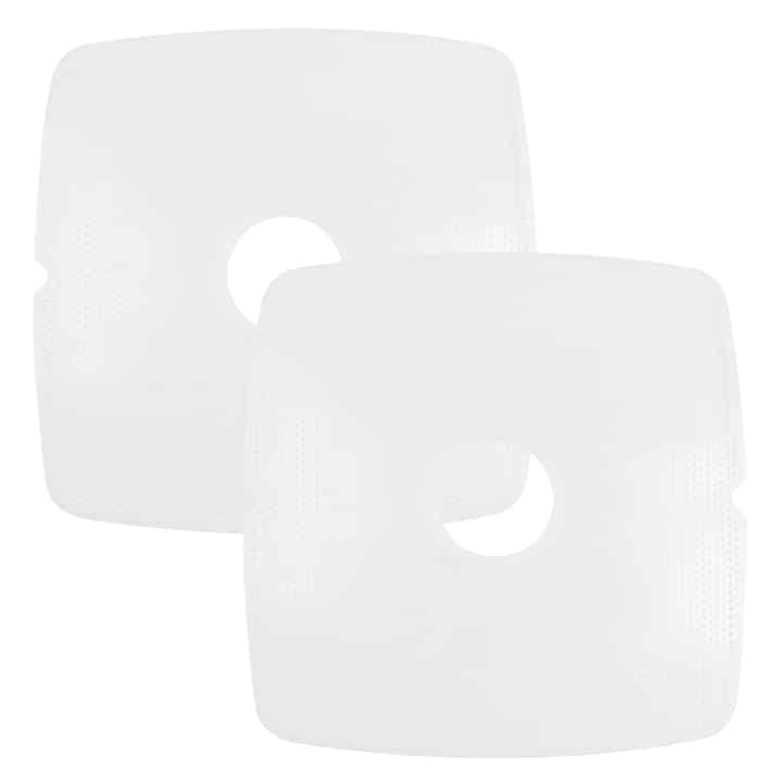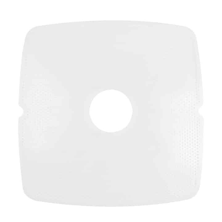 NESCO Snackmaster Clean-A-Screens are ideal for dehydrating sticky fruits and small foods. Dry items like spices and herbs that would normally fall through the spokes of the dehydrator tray. Each removable mesh screen flexes for easy removal of sticky fruits like pineapple and is made of high-quality food grade plastic. To use, simply dry food on the rough side of the screen. To remove the food, use the finger notches on each side of the screen and flex toward the center with a curling action until the food becomes loose. If necessary, cool the screen in the refrigerator to aid in the removal of extremely dried-on food. NESCO Snackmaster Clean-A-Screens fit NESCO 80 Series Dehydrators are BPA-free and compatible with 13½” square trays. HAND WASH ONLY