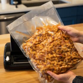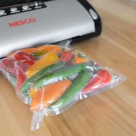 Keep food fresh up to 5 times longer with the NESCO® VS-02 Vacuum Sealer. Prepare whole meals in advance, save leftovers, or buy in bulk and seal for later. Fully automatic, one touch operation, and automatic shut off makes this vacuum sealer easy to use. The seal-only function prevents over vacuuming and crushing of delicate foods. This sealer also features an extended seal time function for thicker bags and moist foods. A convenient bag cutter enables you to create specific sized bags and the roll storage compartment fits up to 11.8” wide roll of bag material. 10 starter bags in two sizes and 2 starter rolls in one size are included to get you started. The NESCO VS-02 Vacuum Sealer is compatible with any brand of vacuum sealer bags.